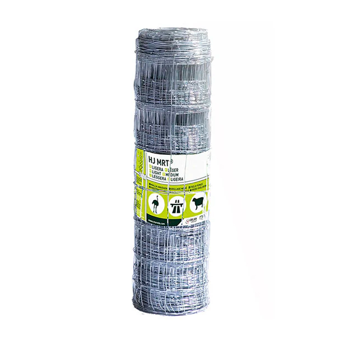 La malla ganadera metálica anudada HJ MOREDA-RIVIERE, caracterizada por su geometría progresiva, está fabricada a partir de alambre galvanizado reforzado, según la norma UNE-EN 10244-2.